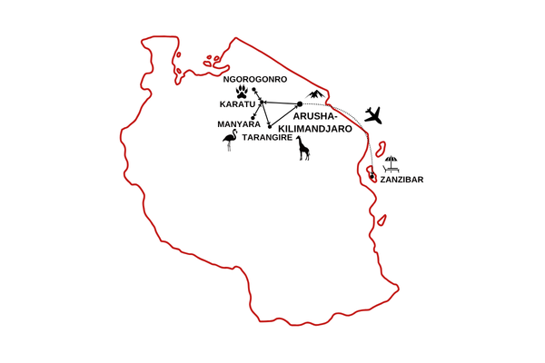 Aventurez-vous à la découverte de la Tanzanie à travers ses paysages naturels incontournables : savanes, parcs nationaux, forêts et lacs et partez à la rencontre de nombreuses espèces animales : troupeaux herbivores, prédateurs, mammifères et oiseaux. Une aventure du lac de Manyara au parc de Tarangire en passant par le cratère de Ngorongoro. Terminez votre voyage par un séjour sur les plages idylliques de Zanzibar en hôtel 5* en formule All Inclusive !