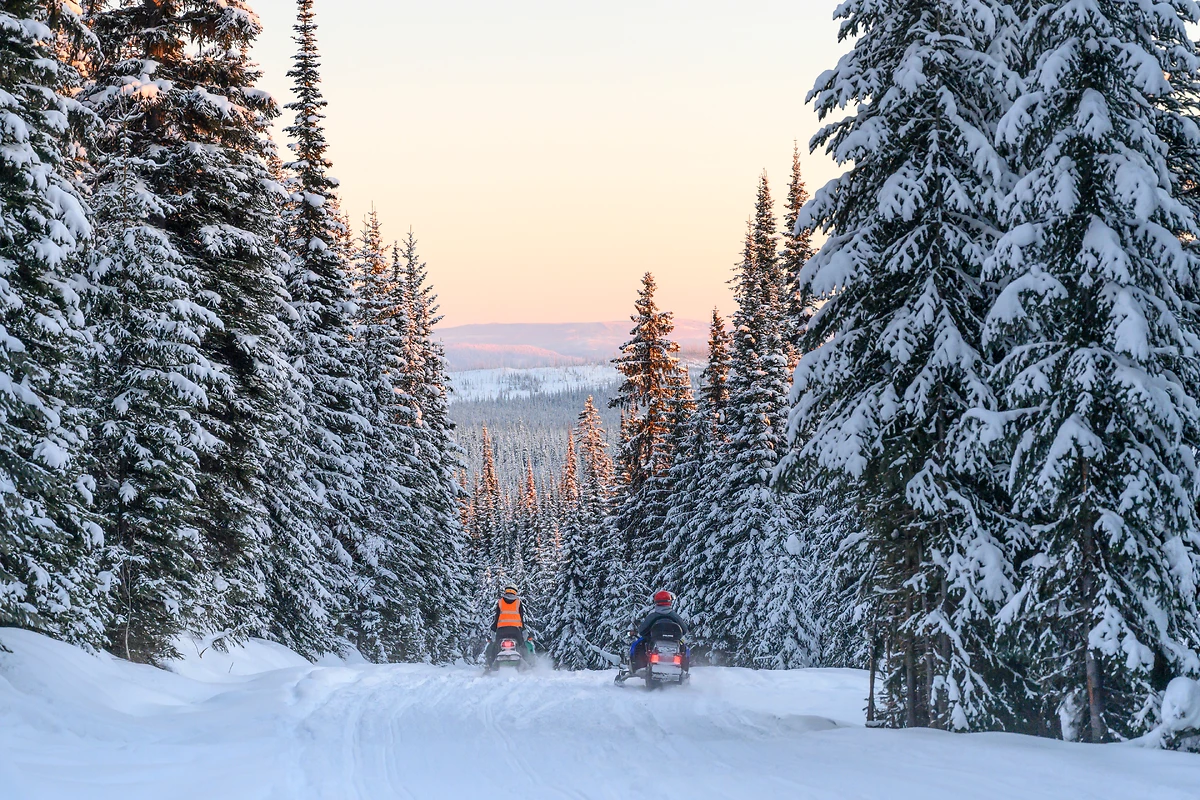 Remise de votre équipement grand froid (combinaison, gants et bottes), puis initiation à la motoneige sur le lac gelé, une expérience inédite et incontournable. Après les consignes de sécurité, départ en duo (2 pers./motoneige) au guidon de votre motoneige (durée : 1 heure environ). Sensations fortes garanties ! Déjeuner. Laprès-midi, glissade en «crazy carpet», ces tapis-luges en plastique qui permettent de glisser sur la pente spécialement aménagée à cet effet. Dîner. Munis de raquettes et dune lampe frontale, redécouvrez la forêt lors dune sortie nocturne Au retour, un chocolat chaud sera servi. Nuit à lauberge.